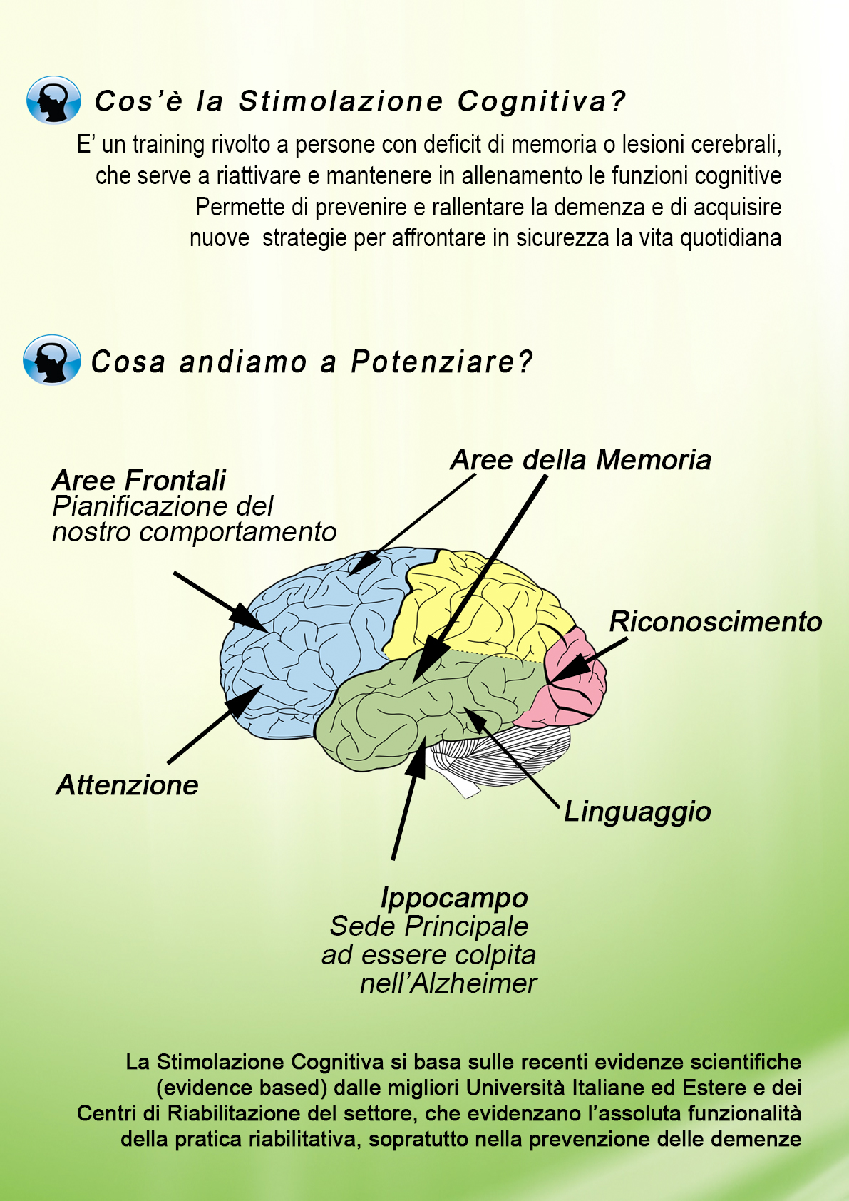 La Riabilitazione, o stimolazione, Cognitiva è un efficace trattamento non farmacologico rivolto ai soggetti colpiti da deficit specifici a livello cognitivo; il fine è quello di prevenire o rallentare il declino.